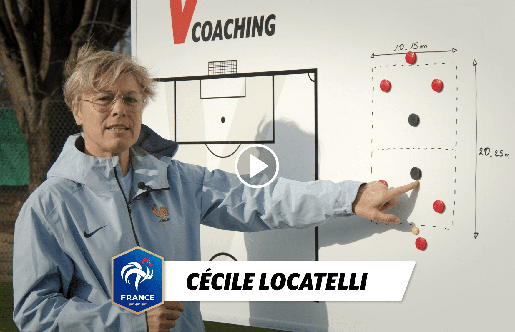 La directrice du Pôle Espoirs Mixte de Lyon et entraineure de l'équipe de France U15 F présente un exercice visant à l'agrandissement de l'espace dans la largeur et la profondeur.