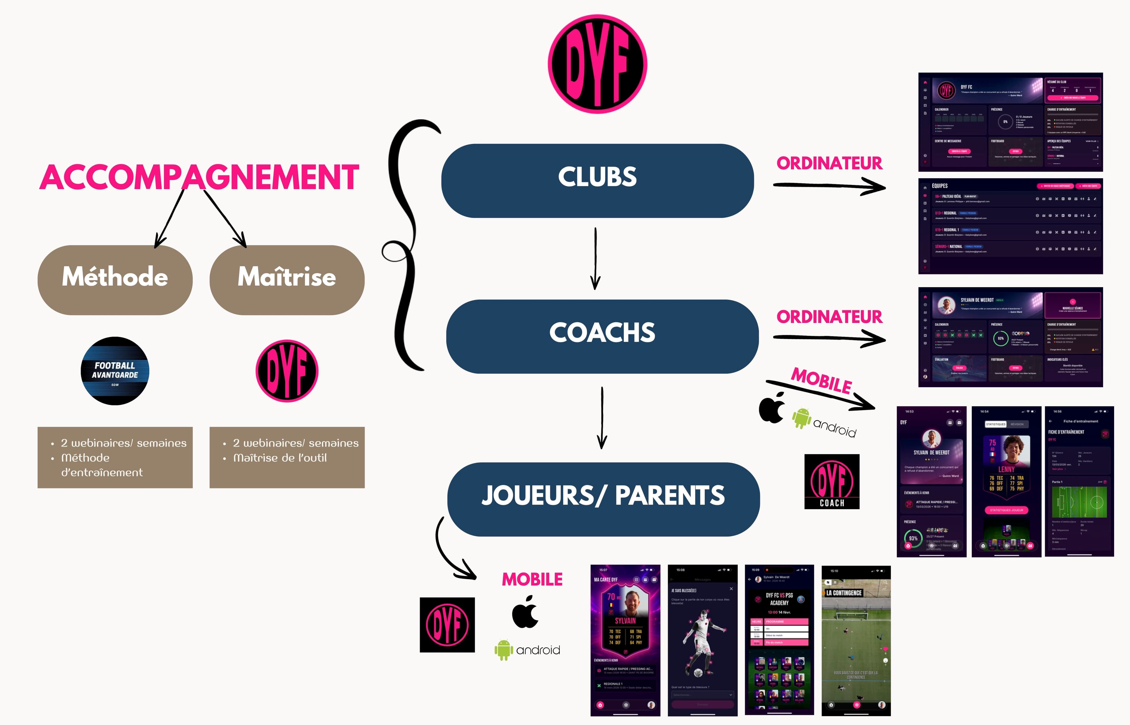 Dans de nombreux clubs de football, le départ d’un entraîneur entraîne une perte totale d’informations : méthodes, suivi des joueurs et progression disparaissent, obligeant à repartir de zéro. Ce manque de continuité s’accompagne aussi d’un déficit de traçabilité, rendant difficile la communication avec les parents et le pilotage global du projet sportif. Aujourd’hui, beaucoup de clubs fonctionnent encore avec des outils dispersés et peu fiables, limitant leur efficacité. DYF (Do Your Football) apporte une réponse concrète à ces problématiques en centralisant toutes les données du club sur une seule plateforme. Séances, évaluations, progression des joueurs et décisions des entraîneurs deviennent accessibles, structurées et durables. Ainsi, même en cas de changement de coach, le travail réalisé est exploitable. La solution permet de structurer un modèle de jeu commun, de suivre chaque joueur sur plusieurs saisons et de piloter le projet sportif via un tableau de bord unique. Elle rend également les décisions des entraîneurs visibles et justifiables, réduisant les tensions avec les parents grâce à des données objectives. Au-delà de l’outil, DYF propose un accompagnement continu avec des webinaires mensuels pour former les éducateurs et optimiser l’utilisation de la plateforme. Les joueurs bénéficient quant à eux d’un suivi individualisé avec la “Carte DYF”, qui rend leur progression concrète et motivante. Déjà adoptée par des milliers d’utilisateurs dans plusieurs pays et par de nombreux clubs, la solution s’impose progressivement. Elle repose sur une conviction forte : le football amateur mérite une organisation aussi structurée que le monde professionnel. DYF apporte ainsi méthode, continuité et visibilité, sans nécessiter de moyens excessifs.