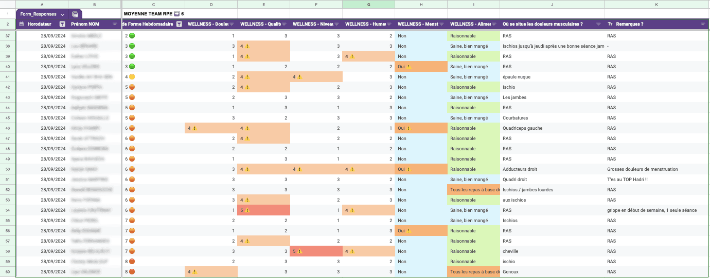 Préparateur physique du club pionnier du football féminin de la VGA Saint-Maur (R1) depuis trois ans, Hadrien Chaduteau a mis au point un modèle pour optimiser la quantification de la charge d'entraînement. "Un outil accessible à tous les clubs amateurs et efficace" que l'étudiant en école kiné de 25 ans dévoile. "Chaque fin de semaine, je fais remplir un questionnaire aux joueuses via Google Forms afin d'obtenir le maximum d'informations sur le RPE (charge globale et fatigue) des trois séances et du match hebdomadaire, le wellness (douleurs, stress, sommeil) auquel j'ai intégré les menstruations et une dernière case "remarque" pour qu'elles puissent communiquer avec nous en dehors de l'entraînement". Les réponses sont ensuite compilées dans un document Sheets pour que les données soient rapidement lisibles. Mais comment les exploiter rapidement sans être un as d'Excel ? "Des proches qui travaillent avec l'IA m'ont donné l'idée d'utiliser Chat GPT et cela m'a permis de m’aider à construire mon modèle et d'individualiser les résultats des joueuses sous forme graphique. La prochaine étape est de s’aider de l’IA pour mettre en corrélation les éléments "fatigues et menstruations". Aujourd'hui l'IA fait peur, mais c'est une aide pour optimiser notre performance". Une méthode qui a permis au staff d’ajuster et d'affiner la charge de travail individuelle et collective pour ses joueuses et pourrait inspirer d'autres préparateurs.