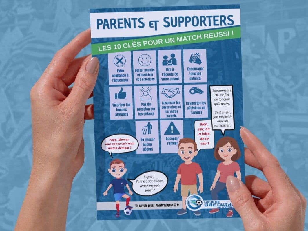 "Faire confiance à l'éducateur, respecter les décisions de l'arbitre, accepter l'erreur..." La Ligue de Bretagne de Football innove en matière d'éducation sportive en lançant le dispositif "Parents et Supporters". Cette initiative repose sur la diffusion d'une affiche didactique, visant à clarifier les rôles des adultes et à promouvoir un environnement de match serein pour les jeunes pratiquants. Destinée aux familles, elle sert de rappel des 10 bons comportements à adopter et recentre l'action des adultes sur l'essentiel : le soutien positif. "Cette affiche vise à changer durablement les mentalités autour des terrains, pour que chaque enfant évolue dans un climat serein et bienveillant. Une attitude de soutien, d’écoute et de respect favorise le développement des valeurs sportives fondamentales comme le respect, la tolérance et le fair-play", insiste la LBF. Pour les clubs, elle est un excellent outil pour s'assurer que les attentes des parents sont alignées sur les objectifs éducatifs de l'équipe technique.