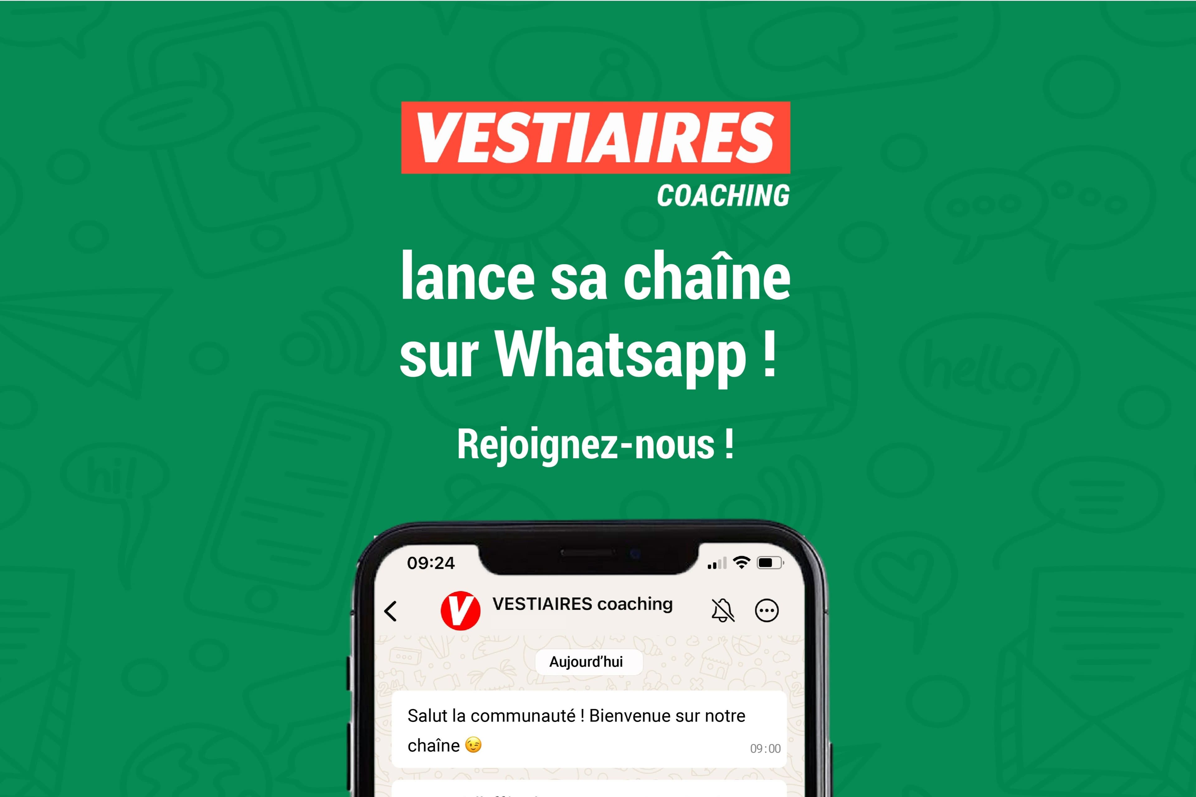 VESTIAIRES Coaching est très heureux de vous annoncer le lancement de sa chaîne WhatsApp officielle. Grâce à ce nouveau canal, retrouvez l'ensemble des contenus de la plateforme, des conseils pratiques et des informations inédites pour participer à la vie de votre média… Directement à partir de votre téléphone ! Objectif ? Rendre toujours plus simple et plus direct l'accès à nos publications pour nos abonnés, tout en restant à l’écoute des besoins des entraîneurs. Pour rejoindre dès maintenant notre communauté de passionnés et rester connectés, il vous suffit de cliquer sur CE LIEN.