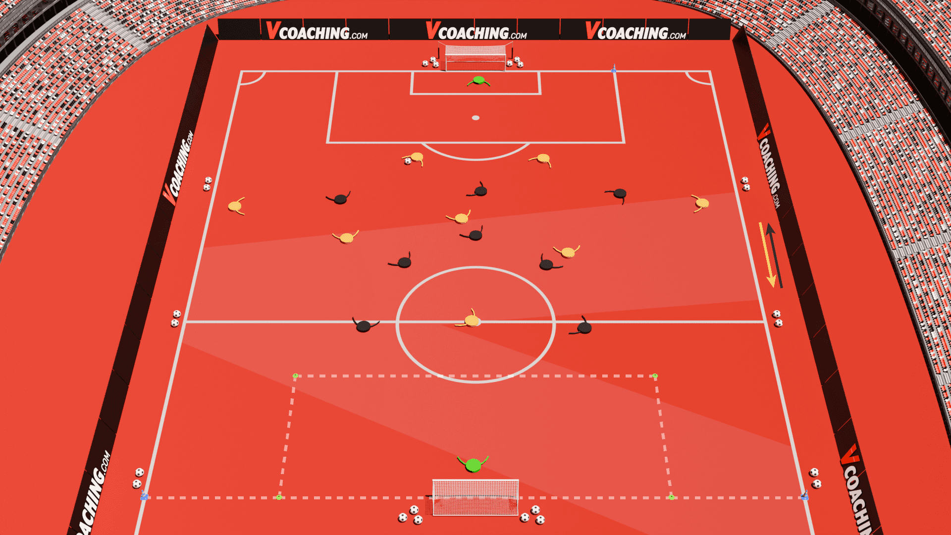 À l’inverse, une activité fonctionnelle réduit à la fois la profondeur et la largeur. Les lignes deviennent incomplètes, mais cela permet de cibler plus précisément certaines relations entre joueurs. L’objectif est d’augmenter la fréquence des répétitions dans un contexte spécifique.