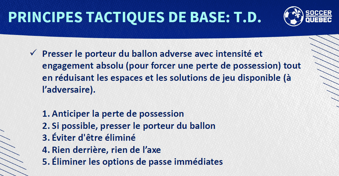"Défendre verticalement sur 3 des 5 couloirs du côté où se se situe le ballon et horizontalement sur 25m "