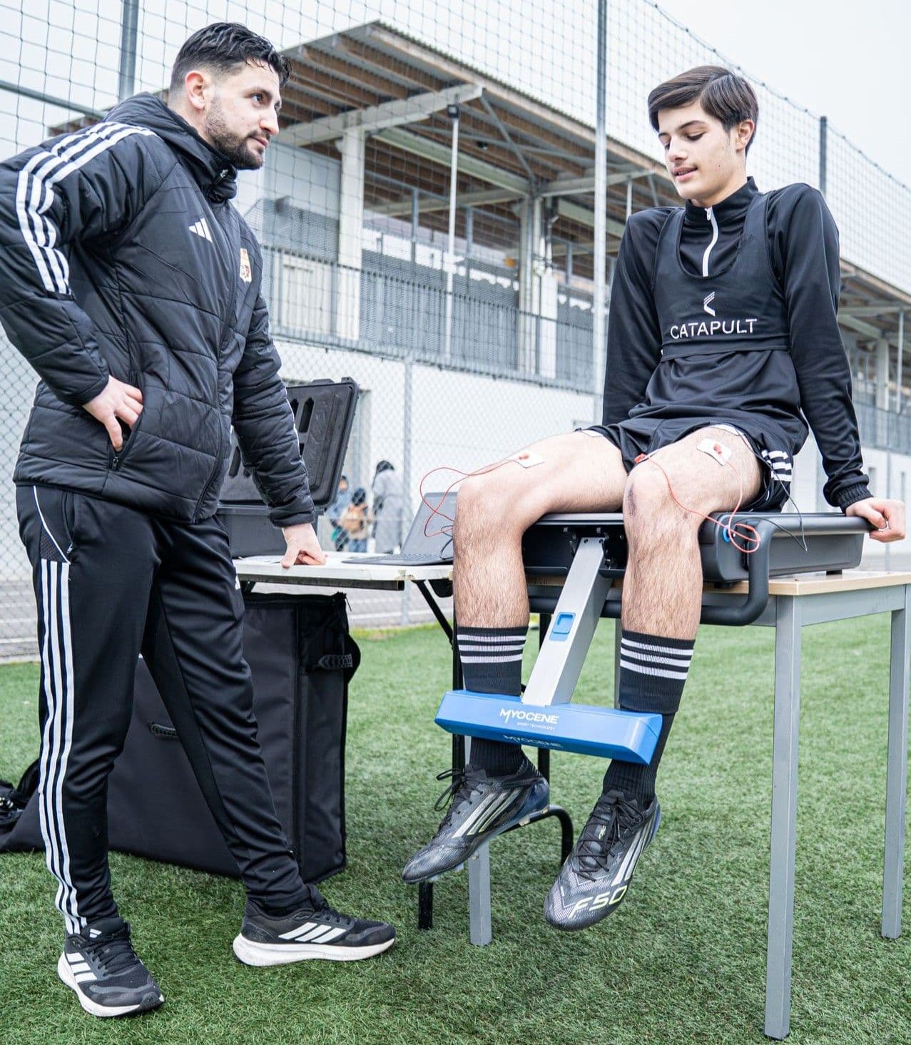 Derrière cette apparente simplicité se cache pourtant un principe physiologique solide, que détaille Martin Buchheit, ancien responsable performance du LOSC et du PSG, aujourd’hui en poste à la clinique Aspetar de Doha : "On sait qu’un muscle frais répond de manière similaire aux stimulations électriques à haute et basse fréquence, tandis qu’un muscle fatigué continue de répondre à la haute fréquence mais beaucoup moins à la basse..." C’est précisément ce que mesure Myocene. Au Qatar, où près de 200 athlètes sont accueillis chaque jour, le scientifique utilise cet outil de manière ciblée, essentiellement en rééducation, avec pour objectif de suivre la tolérance à la charge au fil des séances et de la réathlétisation. "Contrairement aux tests de saut ou de force maximale sur plateforme, aucun effort volontaire n’est demandé ici au joueur. C’est de la pure physiologie musculaire, sans interprétation subjective. La mesure est robuste, rapide et répétée plusieurs fois par jour si besoin. Si la séance du matin a eu un impact trop important et que le joueur n’a pas récupéré avant la séance de force de l’après-midi, on adapte en affinant la charge."