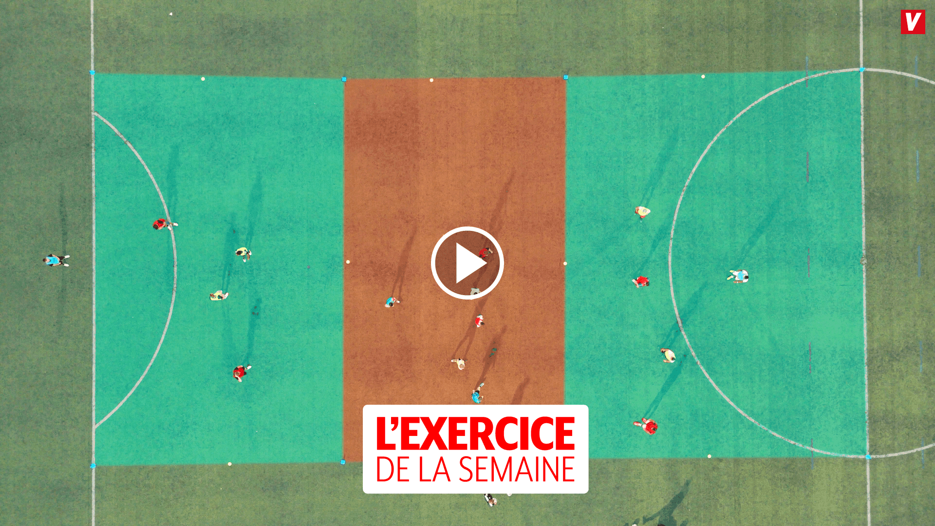 Conserver le ballon en surnombre dans un premier temps pour trouver un partenaire vers l'avant dans un second, c’est la thématique développée dans ce jeu complet. Illustration.